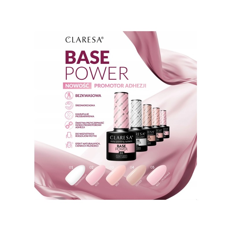 Wyjątkowa, średniorzadka konsystencja bazy pozwala na łatwą, cienką i szybką aplikację, dzięki czemu możesz pomalować 4 paznokcie za jednym razem (poza kciukami). Formułę dobraliśmy w taki sposób, aby baza niemal sama się rozprowadzała ‒ produkt poziomuje się szybko, a Ty nie musisz martwić się wyrównywanie smug po pędzelku, bo te znikają w mgnieniu oka. Bazę wzbogaciliśmy o specjalny komponent, tzw. promotor adhezji, który zapewnia wysoką przyczepność, trwałość do 3 tygodni oraz odporność na odpryskiwanie i zapowietrzanie.